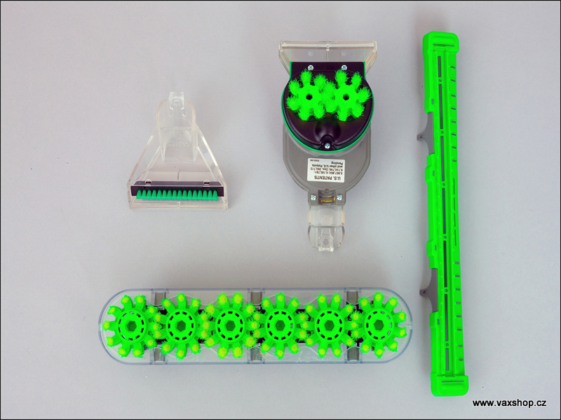 s jednoduchou záměnou kartáčů vyčistí všechny povrchy: koberce, čalounění, PVC, dlažby, plovoucí podlahy i koupelnové obklady.