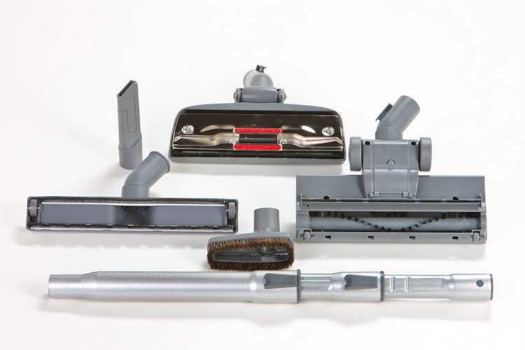 Obsahuje dvojitý teleskopický nástavec, šterbinový a prachový nástavec, kombinovaná hubice, rotační hlavice, hubice na pevné podlahy.